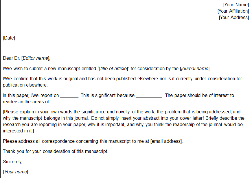 • A brief statement, in a sentence or two, why you think the paper is important and why the journal should publish it (in other words, state the main conclusion of the paper);