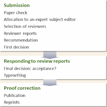 Submission(투고) → Responding to review reports(대응 및 수정) → Proof correction(최종 검증)