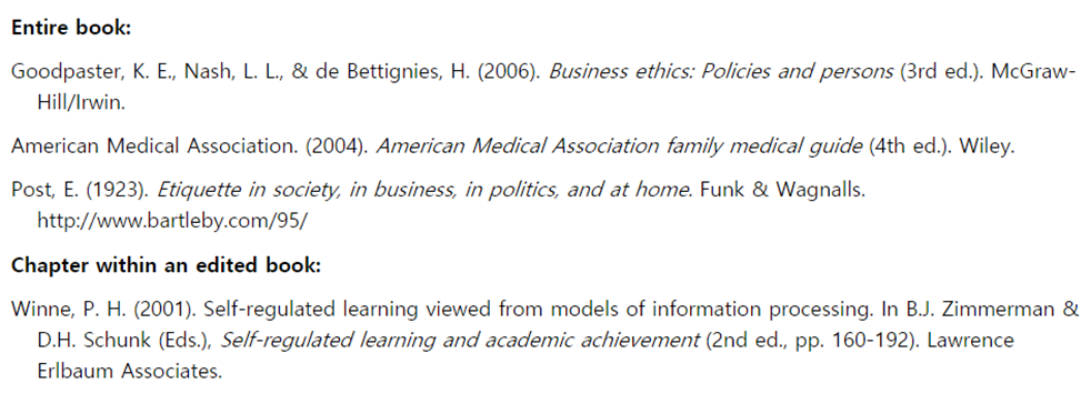 4) APA Style (\(7^th\) Ed.), Citing Books