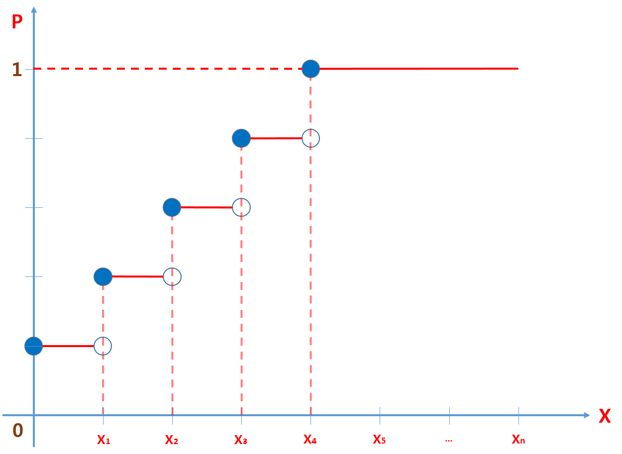 - X 가 이산이면(discrete) : F 는 계단함수(Step Function)이다.