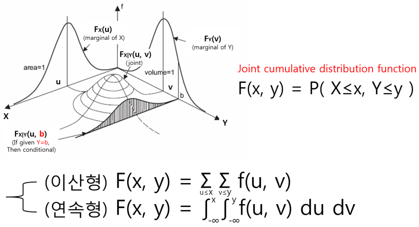 = \(\int_{-∞}^y \int_{-∞}^x f(\xi, \eta)\, d\xi\, d\eta \) ...... X≤x, Y≤y일 확률을 구하려면, joint pdf 이용한다.