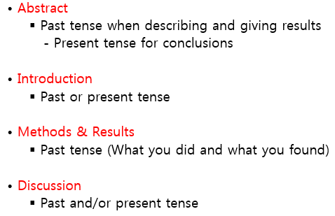 4) Appropriate Tense (normally never the future) - 적절한 시제 사용